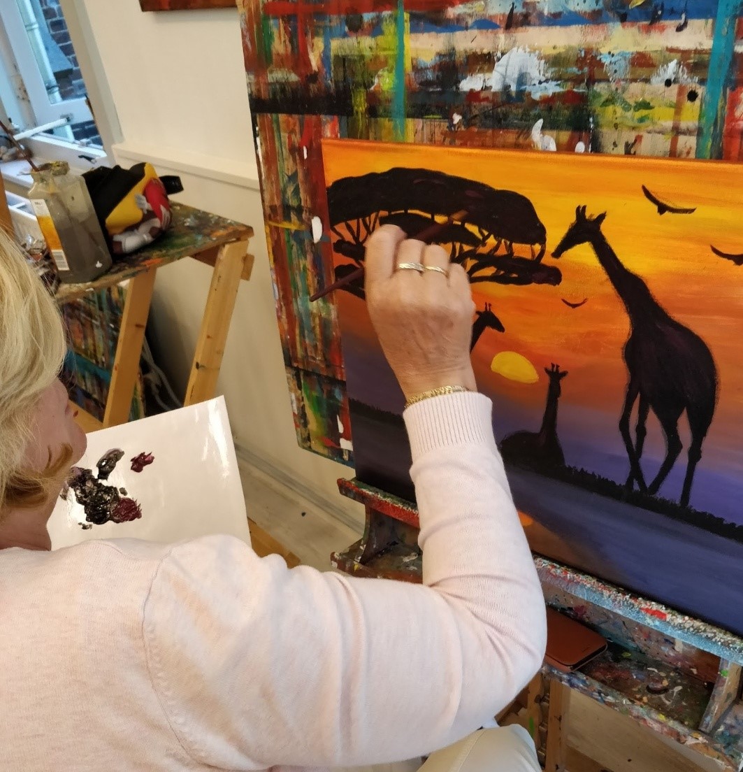 € 125,- voor zes keer, inclusief gebruik papier en kwasten